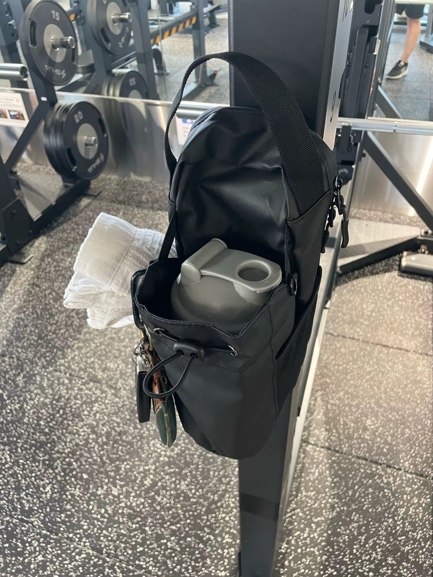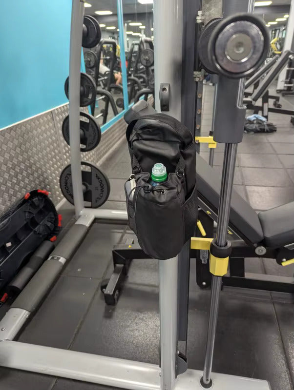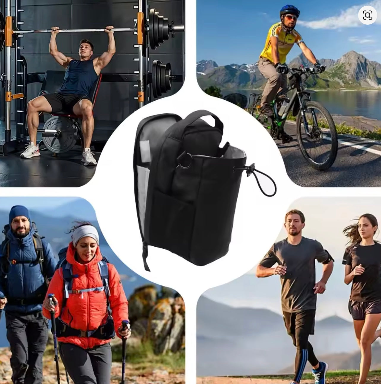 Su şişesi gözü, telefon cebi, cüzdan, anahtar ve kulaklık için ayrı bölmeler bulunur.